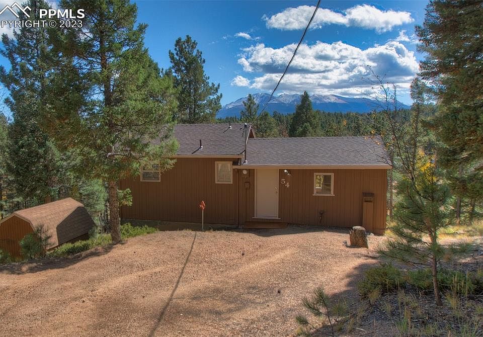 Here it is! Great, compact cabin-sized home with fantastic Pikes Peak views! This lovingly cared for home is ready for new owners! It's almost at the end of the road in Tranquil Acres - out of town and well off the highway for loads of peace and quiet but only 10 minutes into Woodland Park! Step into the living room and enjoy the scenes and seasons from the big picture window that perfectly frames Pikes Peak! Even at night, enjoy the deep darkness away from city lights so that you can enjoy stargazing with or without a telescope! The ample kitchen has a good sized pantry and also the washer and dryer and ANOTHER big picture window to enjoy the views and the nature. Downstairs are the two bedrooms and a door that leads to the outside and those gorgeous woods and views. Don't want to deal with a water association? You're in luck - the well is a good producer of clean and clear CO water! This home is not only near the far end of the development, but also on a cul de sac for great privacy and only a short distance - 5 min - to National Forest! This can be your home base or your second home with easy access to Woodland Park (10 minutes), Colorado Springs (40 minutes), gold medal fishing (25 minutes), all the hiking and biking trails you might want as well as skiing about 2 hours away. Heating system just checked out! Septic being pumped soon! Start your CO dream right here and right now!!