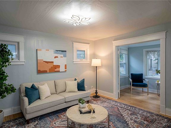 The front sitting area with charming bay windows fills the home with natural light — the perfect spot to relax with your morning coffee. Nearly all windows have been updated, and beautiful bamboo flooring was recently installed throughout.