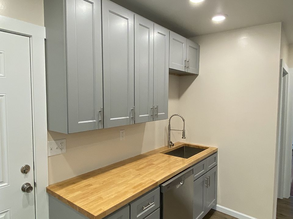 New flooringHardwood floorsFresh paintButcher block counterNew kitchen cabinetsTenant controlled thermostatCompletely renovated bathroom