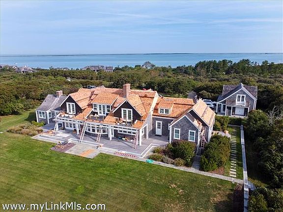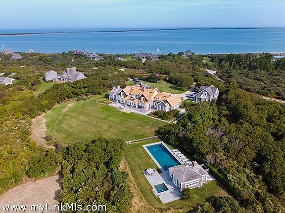 The high elevation of this 4-acre property offers more than 180-degree sweeping water views over serene Polpis Harbor to Nantucket Sound and around to the east to Great Point Lighthouse. Property has deeded beach access across the street between 53 and 55 Pocomo Road making it easy to hop on your skiff and head into town without traffic. Timeless and elegant, with quality construction throughout, this classic compound includes the stunning main house, guest suite, swimming pool and cabana with fireplace.Large office suite over the two car garage with full bath and kitchenette.