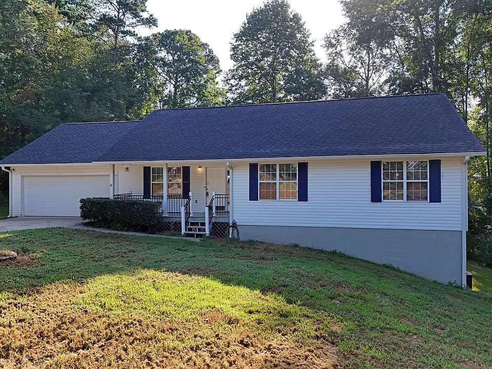 Beautifully updated 3BR/2BA ranch on a private, wooded 1.06-acre corner lot. Open floorplan with modern eat-in kitchen featuring stainless steel appliances, updated cabinetry, and abundant natural light. Spacious living room with durable LVP flooring throughout main level. Primary suite offers a large walk-in closet and ensuite bath with soaking tub and separate shower. Two additional bedrooms share a full bath. Laundry room on main level with washer and dryer included. Deck off the kitchen overlooks the private backyard, perfect for relaxing or entertaining. The highlight of this property is the HUGE full unfinished basement with exterior boat door ideal for storage, workshop, gym, or recreational use. Additional features include a 2-car garage, ample driveway parking, and wooded surroundings that provide peace and privacy. **Bonus: Lease this home and receive a free 55" Smart TV at move-in Pet-friendly home with a 12-month lease. Renters insurance required. Tenant is responsible for all utilities. Application fee is $65 per adult.