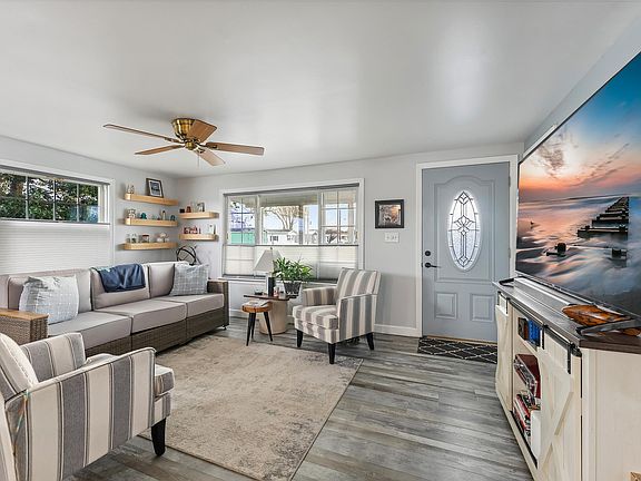 Charming 3-Bedroom Home in Grande Woods South – Move-In Ready! Welcome to this beautifully maintained and modern home nestled in the peaceful community of Grande Woods South. Featuring three spacious bedrooms and a full tiled bathroom, this residence offers both comfort and style in a tranquil setting. Step inside from the charming covered front porch—finished with classic white vinyl rails—into an inviting open-concept living space. The kitchen is a standout with its center island seating, abundant cabinetry, generous countertop space, and a pantry for extra storage. The dining area and cozy living room flow seamlessly, perfect for everyday living or entertaining guests. Recent upgrades include Pergo Outlast flooring (2022) and custom blinds throughout, adding a modern touch to every room. The home features two walk-in closets, providing plenty of storage, and is situated on a private, fenced lot with mature trees and a bonus storage shed—perfect for tools, bikes, or beach gear. The property is being sold partially furnished with an agreed upon sales price (see inventory list in associated documents). There is also parking for up to four vehicles right out front, making it convenient for you and your guests. Additional highlights: Quiet, well-maintained community with clubhouse and pool access. Land lease includes water, sewer, trash, recycling, road snow removal, and property taxes. Owner-occupants only – no rentals permitted. Up to two pets allowed. Buyer must be approved by the park. Please note: Ice maker is not operational and is being sold as-is. Third bedroom is not depicted as it is currently being used as storage. Existing chain-link fence is grandfathered in; if removed, it must be replaced with white vinyl fencing. Metal storage shed is also grandfathered; if replaced, new code requires a smaller shed with approved materials. Don’t miss this opportunity to own a turn-key home in a quiet, friendly community just minutes from shopping, dining, and the shore!