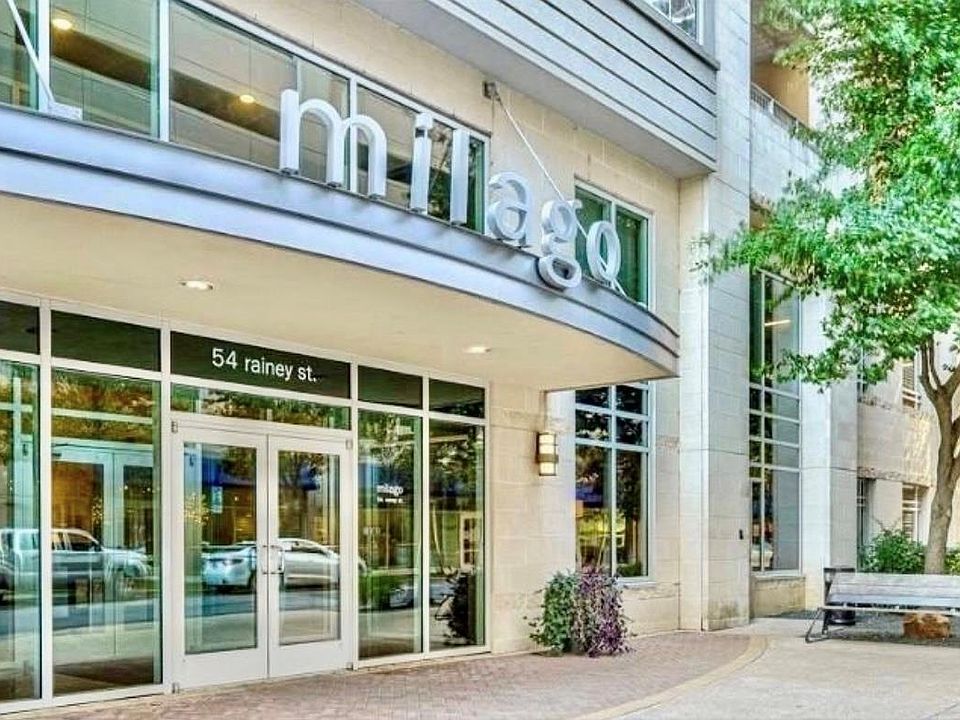 Milago Condo in the Vibrant Rainey St District with Spectacular unobstructed Views of Lady Bird Lake, the Downtown Austin Skyline and the Hill Country. Milago is the only building in the downtown area that sits right beside the trail and lake. The kitchen, dining, and living room areas are open to each other creating a wonderfully spacious feel. This generous floor plan features Two Unique Primary Bedrooms each with an En-Suite Bath, a half bath, oversized walk-in closets and an oversized large balcony to take in the views.. The kitchen has an abundance of storage space and a beautiful curved breakfast bar. Residents have access to bike storage areas, a fully equipped fitness room, club/party room, ground floor lounge with access to the outdoor trailside patio, 3rd level outdoor terrace with a grill overlooking the lake and park, rooftop pool/spa with covered/shaded sitting areas and bbq grills.