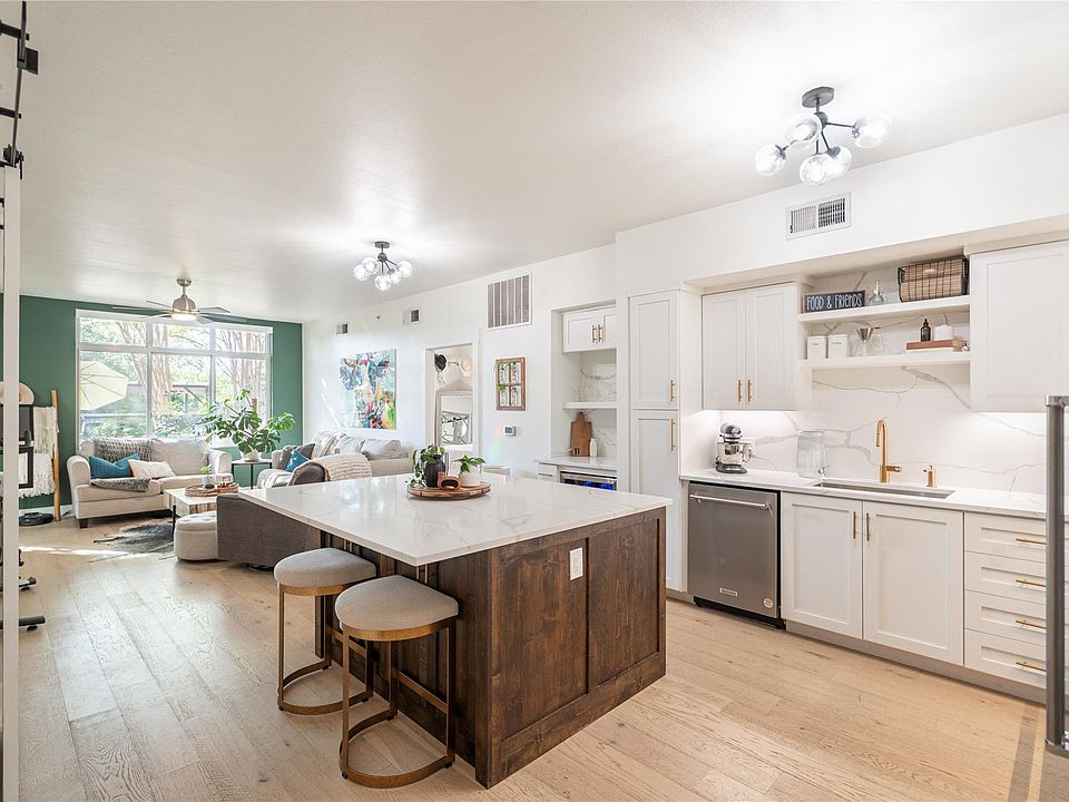 Experience the very best of downtown Austin living in this rare 3rd-floor residence at Milago Condominiums. Nestled in the highly sought-after Rainey Street District, this thoughtfully designed two-bedroom, two-bath home combines modern comfort with unbeatable access to Austin’s vibrant urban core. Step inside to discover an open-concept floor plan featuring a spacious living and dining area, a sleek kitchen with quartz counters, stainless steel appliances, and a large island that doubles as a breakfast bar. Natural light fills the space, while private bedrooms are thoughtfully separated for privacy and convenience. The highlight of this home is the oversized private patio that seamlessly extends your living space outdoors. Unique to this residence, the patio connects directly to Milago’s 3rd-floor terrace — complete with lounge seating and a community grill — giving you the feeling of an expansive backyard in the heart of the city. With easy access to both the elevator and stairs, you can step outside, entertain, or simply relax without leaving your floor. Additional features include: Two reserved garage spaces — a true luxury downtown Primary suite with walk-in closet and spa-inspired bath Stacked washer/dryer and wine refrigerator included Pet-friendly community Milago residents enjoy an unmatched lifestyle with amenities such as 24-hour security, a rooftop pool and spa with panoramic city and lake views, a fully equipped fitness center, a business lounge, and on-site concierge services. Direct access to the Lady Bird Lake Hike & Bike Trail puts nature at your doorstep, while Rainey Street’s dining, music, and nightlife are just steps away.