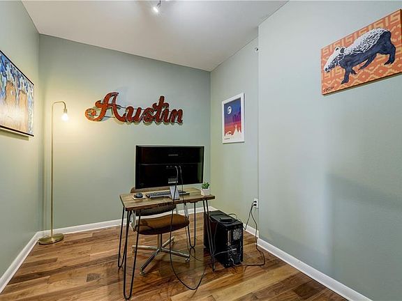 Milago #616 has it all! This lake-facing condo is nestled in one of the most suberbly-managed and well-located buildings in downtown Austin, right on the hike and bike trail and steps from an array of coffee shops, patio lounges, and restaurants. Enjoy views of the South Congress Bridge bats right from your balcony. A BONUS ROOM sets Milago #616 apart from many downtown one-bedroom units in this price range - perfect for guests and/or from working from home! Warm-toned hardwoods throughout + a fresh coat of custom paint make the home feel crisp, clean, and turn-key. Milago residents enjoy a full suite of luxury amenities, including a 24/7 concierge, private terrace with grilling station, a rooftop pool with stunning views + grilling station + hot tub, private lounge/business center, club room, bike storage, and gym. Building charges one-time, non-refundable $300 move-in fee and immediately refundable $500 move-in deposit, pending no damages. The best of downtown living awaits!