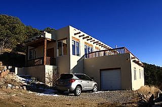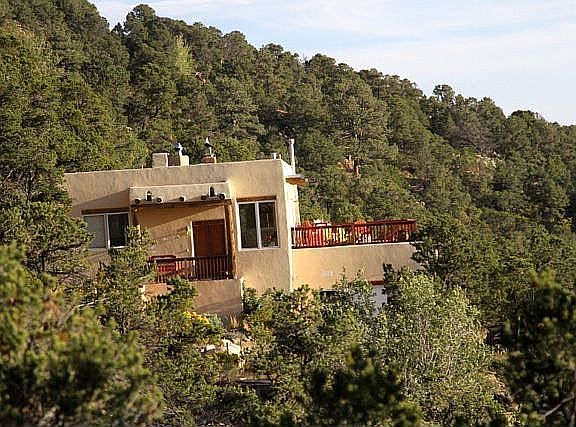 Views, views, and more views await you from this wonderful hillside home in desirable Overlook 2. The 2,350+/- Sq. Ft., 3 bedroom, 2.5 bathroom home sits on a heavily treed 2.39+/- acre lot and features a large (650+ Sq. Ft.) deck overlooking Santa Fe, the Rio Grande Valley, and the Jemez Mountains. When you enter this home, you are greeted with a wonderful living room with a bank of windows that capitalize on the panoramic view and is anchored by the wood-burning kiva fireplace. Beyond the living room is a large great room that contains the kitchen, the dining area, a breakfast nook, and a guest bath. The great room is centered by another wood-burning fireplace (two-sided). On the same level is the master wing that features a kiva fireplace. Downstairs, you will find two bedrooms that are joined by a Jack-and-Jill bathroom, the garage, and the laundry area. The home full of light and has tons of Santa Fe character including beautiful vigas, and organically shaped walls. In addition to the deck, there is a beautiful patio off the kitchen where you can relax and enjoy the peace and quiet. The current owner has made over $100,000 worth of improvement over the last 5 years. Some of the upgrades include: Rock retaining walls, planter beds, landscape lighting, new irrigation system, new boiler, new water purifier, new water pump (for greater water pressure), new front and back portals, and newer kitchen appliances. Schedule a tour today of this spectacular home!