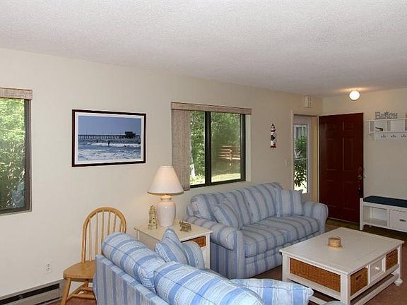 Close to Monument Beach. Do you enjoy privacy? How about a stroll among the tall oak trees. This 2 bed 2 bath ranch style end unit with an open floor plan is surrounded by conservation land. New oversized, private deck. Enjoy a dip in the village pool or a leisurely walk to Monument Beach. Very gently used.