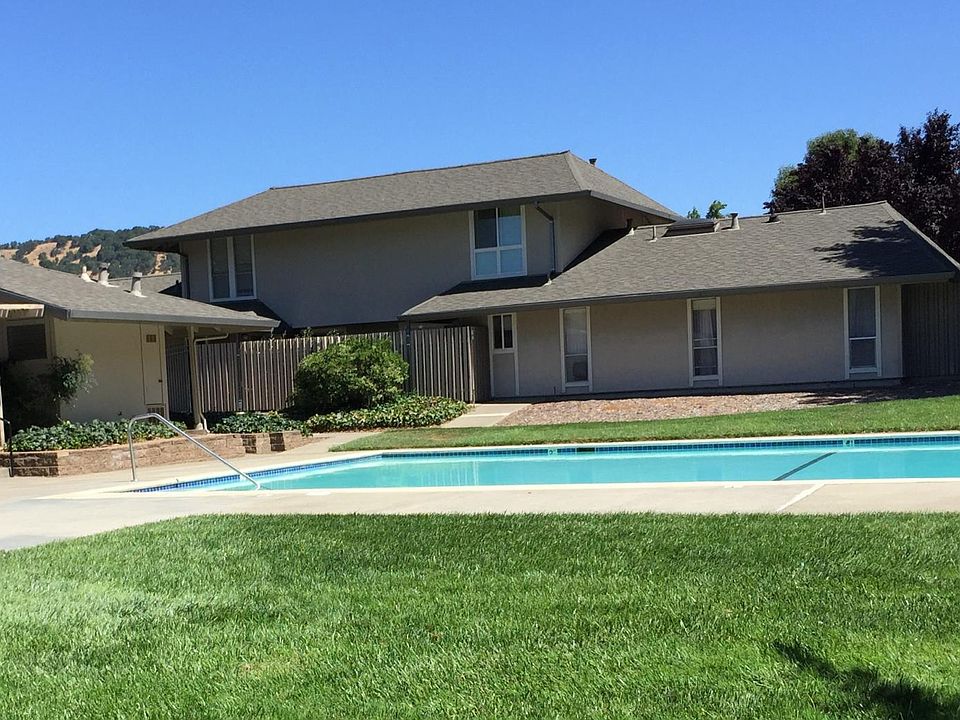 Charming unit.Pergo floors on lower level. 1/2 bath down. Living room, Kitchen w/gas range downstairs plus dining room. Patio at front.. Outside storage at back of unit. Stack washer/dryer added inside unit. Double pane windows,newer blinds. Two bedrooms up with full bath.Dixie School district. 1 assigned parking carport space.Close to shopping, 101,Northgate Mall. Bus 1 block .Water and garbage included in dues. Investors Special, home has a lease for a year.