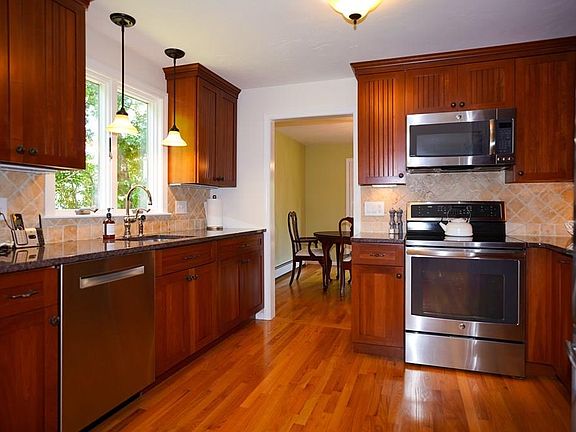 Come see this gorgeous, turn key home ready for you to enjoy! Enter eat-in kitchen w/ granite counters, upgraded cabinets with under cabinet lighting, ss appliances and tile back splash. Dining room with French doors leading to a large deck with views of the yard and gardens. Living room offers custom built-ins on either side of the wood burning fire place with marble surround and hearth. Family room and full bath with shower on first floor as well. Sparkling hardwoods throughout much of home refinished 2016. Head upstairs to 3 spacious bedrooms w/ hardwoods and large closets. Beautifully renovated upstairs bath including tile tub/shower, glass doors, marble floor and granite vanity. Bonus space in lower level with newer carpet and large play/rec room with ample storage. Interior paint 2016, vinyl fence 2017, ADT alarm system 2016, basement carpet 2019. Amazing large lot with fantastic yard! Do not miss this great price point in the fantastic town of Hopkinton!!