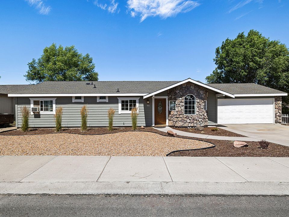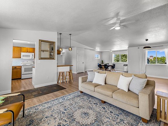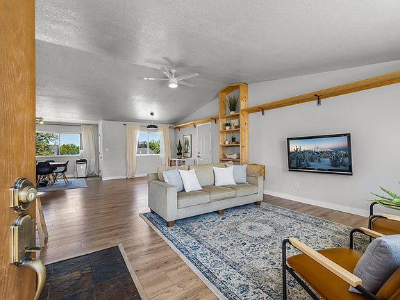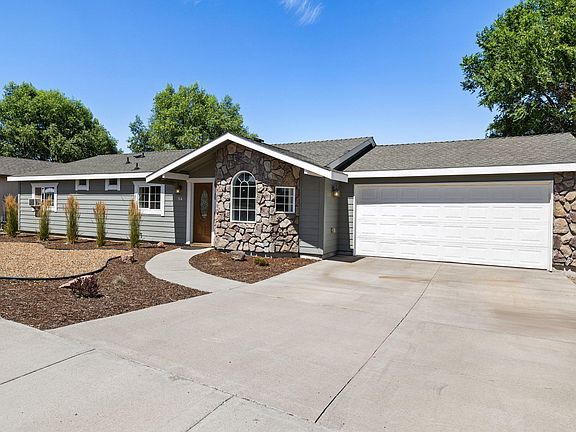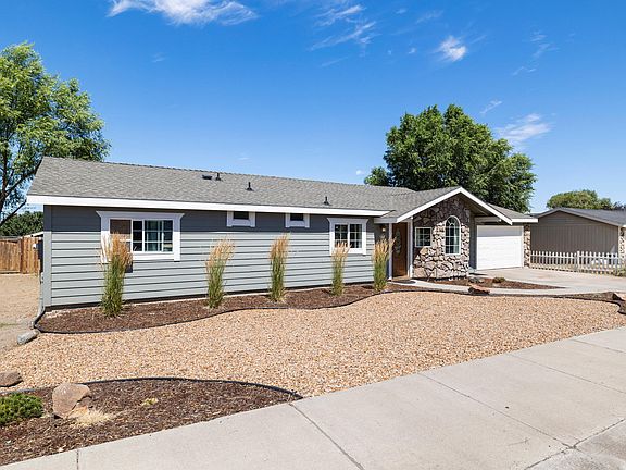 Light, bright and ready for the new owners to come and love the house as much as these owners have! Vaulted ceilings greet you as you enter into this updated Sunrise Estates 3 bed/2 bath, 1470 sq ft single level home. Flexible layout offers large open areas for living/dining and office area. Main living areas have laminate wood flooring, custom built-in shelving, new lighting fixtures. Kitchen offers updated countertops, full subway tile backsplash, and center islands area for extra storage. Large dining room with exterior access door leading out to the patio, fire-pit area and fully fenced yard. Both hall and primary bath recently upgraded and updated for a cohesive feel. Laundry room with cabinet as well as hall linen closet. Double car attached garage, along with on street parking available. Close proximity to schools, parks and downtown shopping. From the moment you walk in the doors - this home will welcome you to your new home sweet home!!!