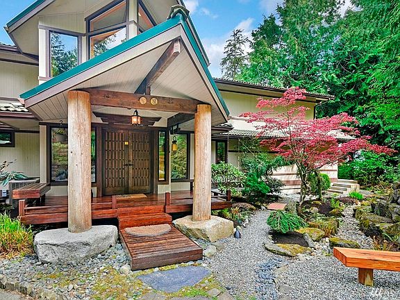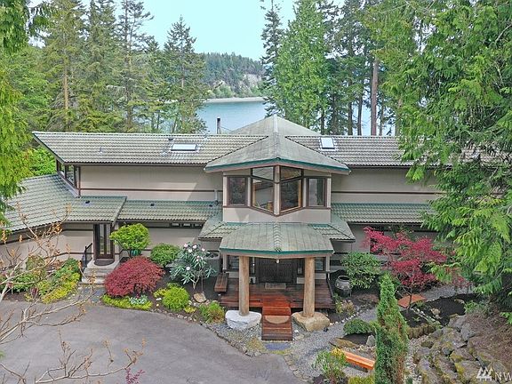 NW Port Ludlow Contemporary blends the best of the Pacific NW and Asian influences. Hand shaved log framed entry, hand carved staircase, and exquisite wood finishing. From the gated entrance to the 225' of waterfront over looking Hood Canal and the Cascades. Large deck facing the water, outbuildings, forested, secluded estate. Explore the pristine beach at the adjacent Shine Tides State Park.
