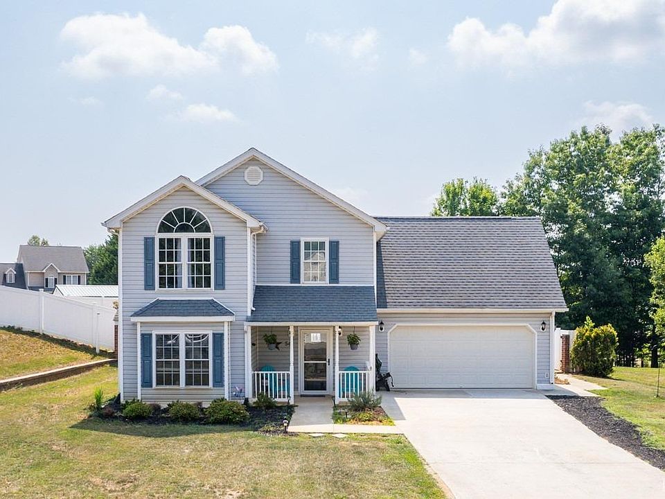 Looking to make a splash this summer? Cool off in the sparkling in-ground pool with brick and stone decking, a patio area, and privacy fencing. This property features an open living area with a large great room overlooking the pool. The kitchen has plenty of cabinets, is open to the breakfast area, and is adjacent to the laundry closet. The dining room has a fireplace, laminate vinyl plank floors throughout the main level, and an attached 2-car garage with epoxy flooring and a concrete driveway. The second level offers a primary bedroom with a walk-in closet and a beautiful bath with double granite vanity, as well as three more bedrooms and a full bath. Maintenance-free living, close to Liberty University and other conveniences. Come by to see for yourself today!