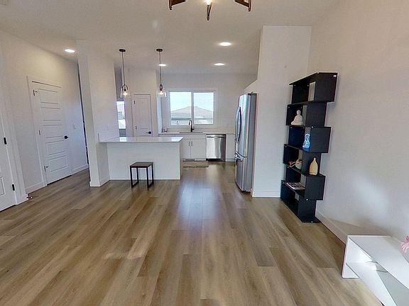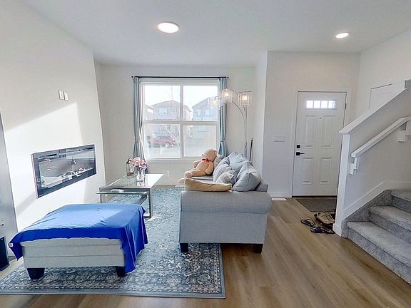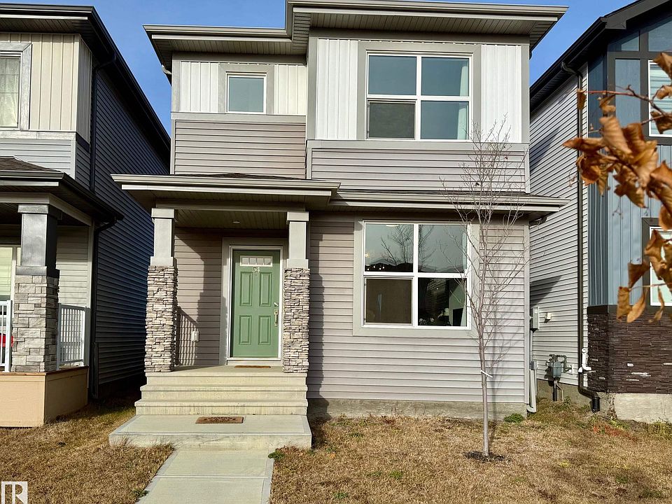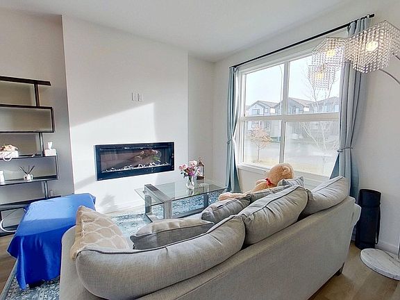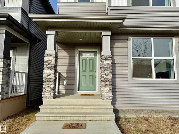 2022-built, 1,410 sq ft two-storey home by Alquinn Homes in Fort Saskatchewan. Main floor features an open-concept layout with luxury vinyl plank flooring, custom MDF shelving/cabinets, electric fireplace, large living & dining area, kitchen island with generous counter space and a 2-piece bath. Upper level offers 3 bedrooms and a 4-piece main bathroom; the master suite includes a 4-piece ensuite and walk-in closet with MDF shelving. Separate side entrance plus rear entrance. Fully-landscaped yard with partial fencing. Full, unfinished basement. Comes with all six appliances and custom window coverings. Oversized double detached garage (suitable for a full-size pickup) with opener and two remotes. Convenient access to the Heartland area without driving through town, close to all K-9 schools, approximately five minutes’ drive to the hospital, easy access to highway and major roads.