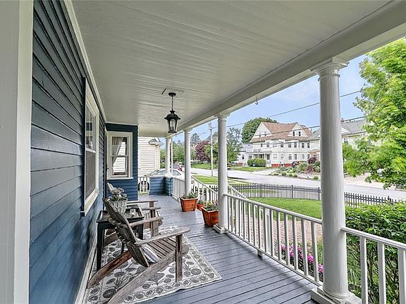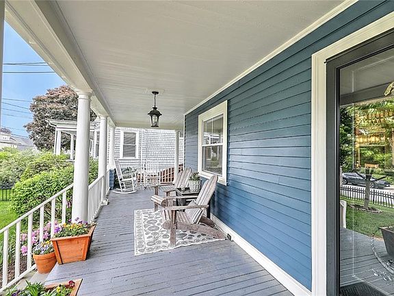 Discover the perfect blend of historic charm and modern luxury in this stunning residence at 54 Strathmore Road. This home boasts exquisite architectural details, including paneled walls, original woodwork, and beautiful hardwood floors. Step into the living room with a fireplace, creating an ideal setting for relaxation and gatherings. The living room seamlessly flows into the formal dining room, a sophisticated space perfect for entertaining. The chef's kitchen has stainless steel appliances and ample counter space. Upstairs are three generous bedrooms, each filled with natural light, and a beautifully tiled bath that combines style and functionality. The convenient laundry room adds an extra touch of practicality to everyday living. Ascend to the third level to find the primary suite. The suite includes a sitting area, a gas fireplace, and a stunning marble bathroom with a double vanity and a large walk-in shower. A slider leads to a private deck with views of Narragansett Bay. The lower level is a versatile space, featuring a family room with a fireplace, an additional bedroom, and a bathroom, making it ideal for guests or an in-law suite. Outside, the fenced yard with a patio and firepit offers a private relaxing spot. The prime location is a short walk to all the restaurants, shops, and marinas in Pawtuxet Village. Whether seeking a peaceful retreat or a vibrant community, this property offers the best of both.