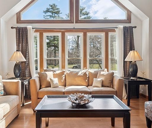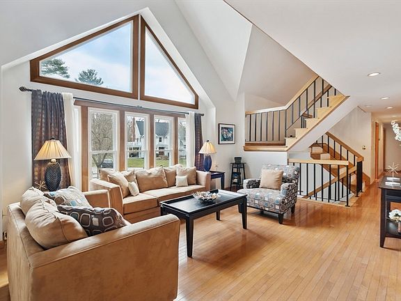 Big, bold, and beautiful. Impressive 5 BR 2.5 BA Contemporized Cape home sits nicely on a .54-acre level lot on a cul-de-sac located in an exclusive neighborhood - just minutes to major routes & Commuter Rail. Enjoy three levels of living space with thoughtful architectural features. The sun-splashed living room has vaulted ceilings and opens to the formal dining room. The kitchen has white cabinetry, stainless-steel appliances, granite counter tops, a breakfast bar, and an area for casual dining. The open-concept kitchen embraces the family room with a gas fireplace and access to the deck - perfect for grilling or enjoying the view of the backyard. Two bedrooms and a full bathroom complete the main level. The Primary Bedroom with en-suite bathroom, and the home office are located on the upper level, while two additional bedrooms (one used for Home Gym), bath/laundry, and Game Room are on the lower level. Interior access to 2-car garage with additional storage space. Move-in ready.