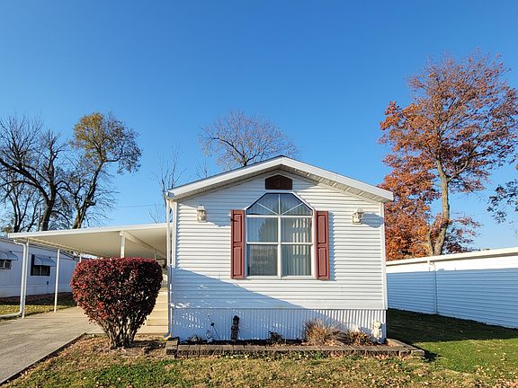 This well cared for mobile in Shrine Road Mobile Home Park is ready for your preview! Located to the rear of the park and backs up to the farm field. This 1999 Dutchmen has an extra long carport with storage shed to stow away items. The ramp/decking winds its way to the front door porch. Inside you will find an open floor plan with a split bedroom lay-out. The open living room blends well into the oversized eat-in kitchen. Plenty of cabinetry & counter space. Huge pantry cabinetry for added storage. The extra counter space would make the perfect coffee bar & MORE. All appliances to convey. Walk-in utility room houses laundry & furnace closet. Access the outdoor carport from here. The main suite is generously sized & has a walk-in closet. The en-suite is a 'spa-like' oasis with garden tub, shower stall, plenty of storage & counter. Just inside the front door entry is the 2nd full bath & secondary bedroom.