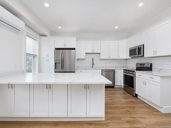 White tile backsplashBrand new kitchenCeramic tile flooringNew tile bathsQuartz countertopsGorgeous hardwood floorsStainless steel appliances