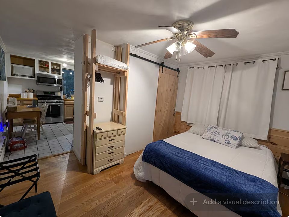 Private Entrance Studio with your own 3/4 bath-rainmaker shower and heated floor; includes a full kitchen, washer-dryer. Convenient location; walkable to Boston Commuter Rail/ MBTA, local hiking and walking trails, river views and canoeing/kayaking/fishing; a short drive to Phillips Academy, Merrimack College, UMass - Lowell and the Merrimack Valley. An easy commute to Boston weekdays. Visit historic Andover MA. One bed is a queen. There is a second bed, a twin trundle. If you need two beds. Located in a residential neighborhood with a backyard and local hiking trails. The studio is part of our home and you are likely to hear us coming and going and using our adjacent kitchen. The doorway between the two units is locked. We and you are the only guests in the home. TV, wifi, and internet included.