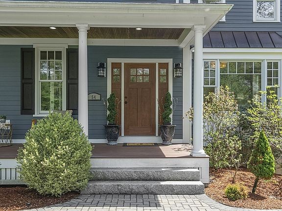 Beautifully designed 4 bed, 4.5 bath modern Colonial tucked at the end of a tranquil neighborhood, abutting conservation land and trails. Spanning four levels, the open-plan first floor blends modern living, work, and entertainment. Enjoy a stylish white kitchen with granite countertops, stainless steel appliances, and two dishwashers. The spacious family room features a cathedral ceiling and stone fireplace, adjacent to the dining room and a comfortable living room. A private office and half bath complete the first floor. Two staircases lead to four bedrooms, including a luxurious primary suite with walk-in wardrobe; another bedroom has its own private bath. The walk-up attic offers flexible office and recreation space, while the basement includes an exercise room, media area, and game room. Outdoors, unwind in the heated saltwater pool with fast lane or relax in the hot tub, cabana, and gazebo. A finished 3-car garage with epoxy floors and slat walls completes this superb home.
