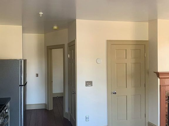 The large windows in this first floor, one-bedroom apartment complement the high ceilings and the rich, traditional wood floors located throughout the space. The living space is accentuated by an original brick hearth (not functioning) and mantle. Rooms have elegant, thoughtful lighting. The apartment includes energy-efficient appliances including a full-sized refrigerator, gas range with convection oven with a direct-vent overhead hood, and dishwasher. The kitchen features a deep stainless-steel sink with commercial-style faucet, and custom countertops and hardwood cabinets. The sparkling bathroom includes a large walk-in, custom-tiled shower with rainfall showerhead and hand sprayer, toilet, pedestal sink, and metal fixtures. There are a washer and a dryer within a closet inside the apartment. Modern, energy-efficient heat pumps provide warm, even heat in the colder months and cool air in the summer.