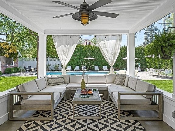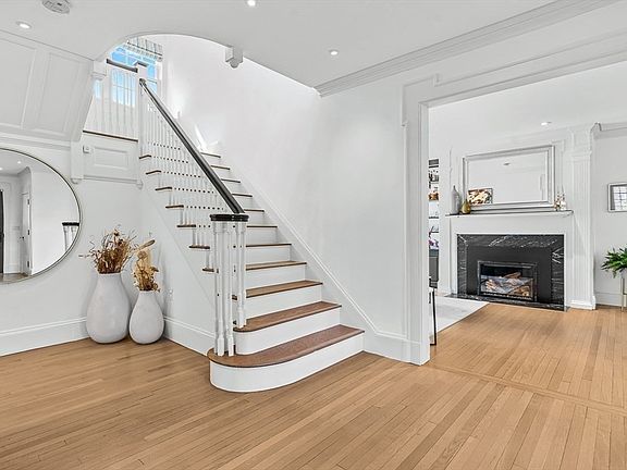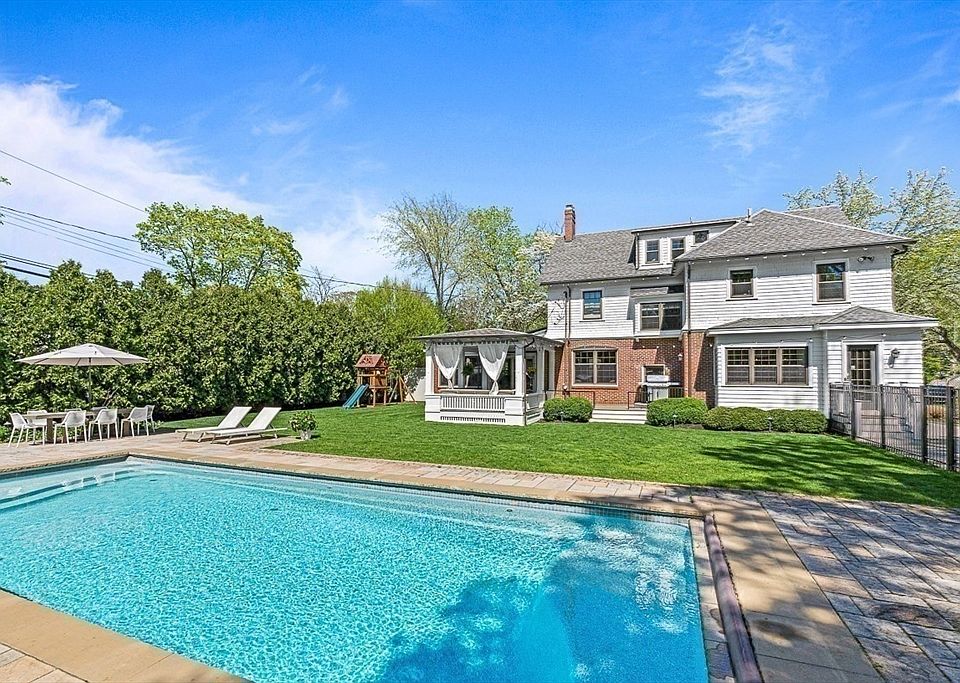 Exceptional value, prime living in this stunning home w/ spectacular resort style back yard surrounded by mature plants and trees encompassing the gorgeous yard/setting. Completely updated throughout w/ custom high end finishes, open floor plan, wonderful chefs kitchen w/ Sub Zero- Wolf appliances, sunny breakfast/dining area w/ a wall of windows overlooking expansive backyard featuring gorgeous patio & maintenance free heated POOL w/ in- floor cleaning system & auto cover! Inviting covered rear porch /gazebo for outdoor living complete with movie night projector! Impressive family rm w/ views of yard, gas fireplace & built in bookshelves . Stylish formal dining rm w/ bay window & custom wainscoting, front to back LR w/ fplc; grand rooms, detailed moldings, updated baths, primary suite w/ 2 walk in closets, spa like bath w/oversized shower & soaking tub. Full 3rd floor w/ 3 Beds & full bath, new heating/ cooling, newer roof. 2 car garage w/space above & basement awaits finishing!