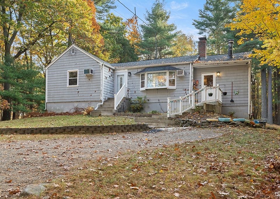 JUST LISTED!! LOCATION LOCATION! Enjoy one level living in one of Topsfield's most desirable neighborhoods! Surrounded by 2 lush acres, this sweet 3-bedroom, 1.5-bath Ranch with 1,200+ sf of living space is a rare find. A generous family room with a wall of windows and access to a delightful, covered porch providing a versatile indoor-outdoor space leading to a sprawling yard is one highlight on the main level. So is the roomy eat-in kitchen with ample counter space, breakfast bar, and dining area. A wood-burning fireplace adds charm to the living room with hardwood flooring. Three bedrooms, all with hardwood flooring, share a full updated bath. A large bonus room, large walk-in closet, and a flex room which would make a great office, guest room, even a home gym are on the finished lower level. Newer appliances, newer baths, 9-year-old heating system and privacy galore are just some of the hallmarks of this great family home.