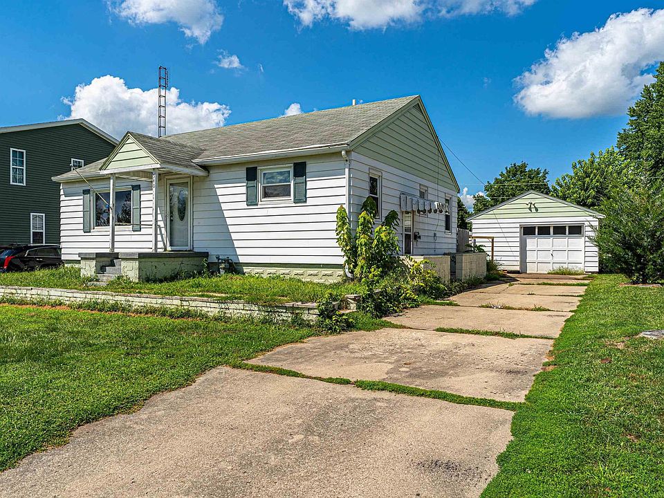 Rock solid 3 bedroom, 2 full bath aluminum sided bungalow style home host to a full partially finished basement, privacy fenced backyard, and a detached garage! Main floor of home features a roomy living room with hardwood flooring, tiled kitchen, three comfortably sized bedrooms -- all with hardwood flooring, and a full hall bath. The full partially finished basement is host to a roomy family room with laminate flooring, full tiled bath with a whirlpool tub as well as adjacent laundry facilities, and a large storage/work/mechanical room area. Vinyl replacement windows throughout. Situated close to various amenities as well as a local grade school in the heart of historic Lincoln, Illinois, this charming residential dwelling just needs your touch! Sold as presented -- conventional or cash only, please!