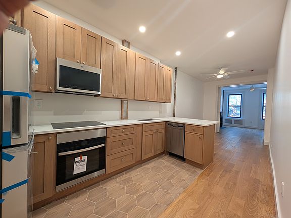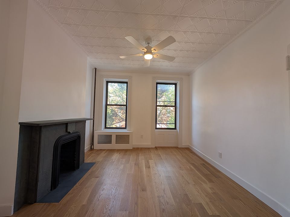 ENTIRELY RENOVATED VERY HIGH END! FLEXIBLE LAYOUT This stunning, floor-through apartment offers a rare combination of space, style, and flexibilityjust one block from Prospect Park West. Located on the second floor of a 4-story walk-up with only 8 units, this home is part of a quiet, well-maintained building. Pre-war charm blends seamlessly with modern upgrades: rustic hardwood floors, a decorative fireplace, soaring 11' ceilings, and a brand-new high-end renovation. Flexible Layout Options: Couples / One-Bedroom Use: A spacious 11.5' x 11' bedroom, plus a dedicated 11' x 11' living room and a separate 8.5' x 11' dining areaa true home feel with multiple living spaces. Roommates / Two-Bedroom Use: With two separate entrances and generously sized rooms, the apartment easily works as a two-bedroom share. Each room accommodates a queen or king bed with additional furniture. High-End Renovation Features: Sleek, fully renovated eat-in kitchen with pantry, premium cabinetry, and updated finishes as well as a D/W Restored pre-war details paired with modern design choices Bright, airy layout with great flow and functionality Details: Heat & hot water included Small pets welcome (under 30 lbs) Guarantors considered case-by-case Sorry, no laundry in building (but just around the corner!) Just blocks from Prospect Park Westquiet, stylish, spacious, and entirely renovated!