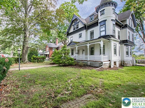 SHOWSTOPPER. You do not want miss this gorgeous 19th century victorian style home with stunning architecture and old-world charm that is conveniently located within the desirable Catasauqua Schools! This stunning property with unique characteristics throughout offers over 4,000 SF of finished space, upwards of 6 bedrooms, 3 full 1 half bathrooms, wraparound front porch, a private backyard and a detached 2 car garage. Are you looking for a truly unique property with endless space....look no further! The wraparound covered front porch welcomes you as you enter the home to an inviting spacious foyer with high ceilings. Abundant natural light fills the first floor, which offers a living room, family room with wood burning FP, dining room with access to/ from the kitchen, a half bathroom and an oversized eat-in kitchen with a stunning gas stove, plenty of cabinet space and great views of the backyard. The second floor can be accessed by separate stairwells and offers 3 extremely spacious bedrooms, including the master ensuite with a giant walk-in closet! 3 additional spacious bedrooms, along with a full bathroom can be found on the third floor. Need more space!? Do not forget about the basement offering finished space along with plenty of storage options. Out-back you will find great yard space and a two car detached garage. Some updates include replaced flooring, updated bathrooms, newer electrical and replaced windows...just to name a few! Check out this gem while you can!