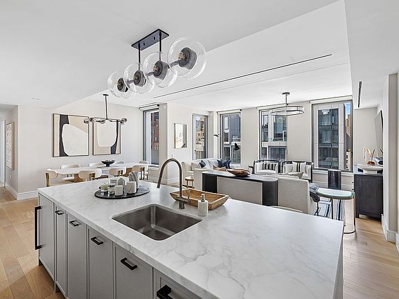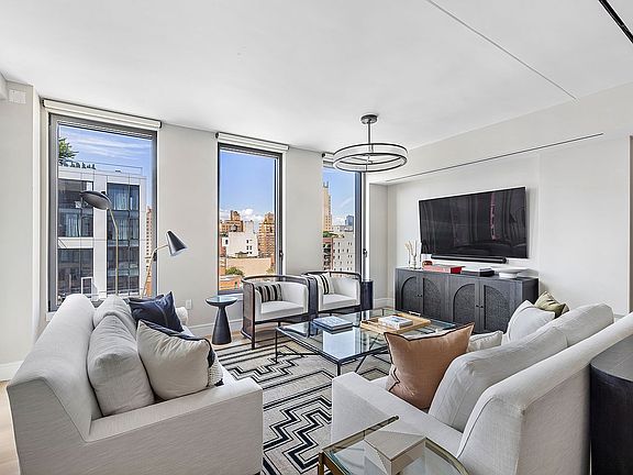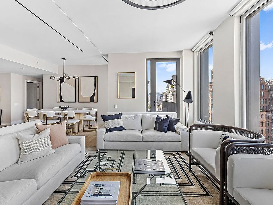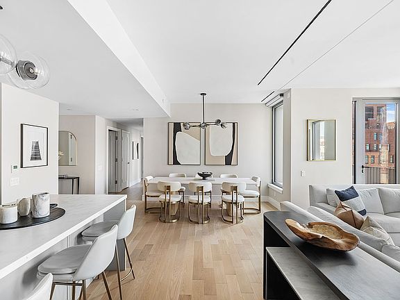 Residence 11A is a stunning three bedroom, two and one-half bathroom residence filled with light from its gorgeous Southern and Western exposures. The 180 sqft terrace offers incredible views up and down sixth avenue and ample room for sunset dining. The 1,648 sqft interior features 5" white oak flooring throughout and oversized tilt-and-turn windows with enhanced noise reduction already fitted with gorgeous motorized blinds.
