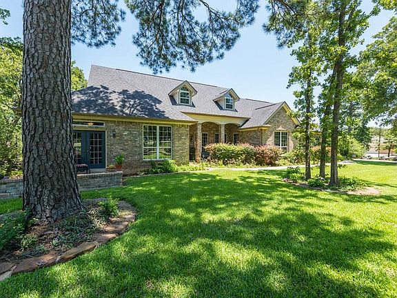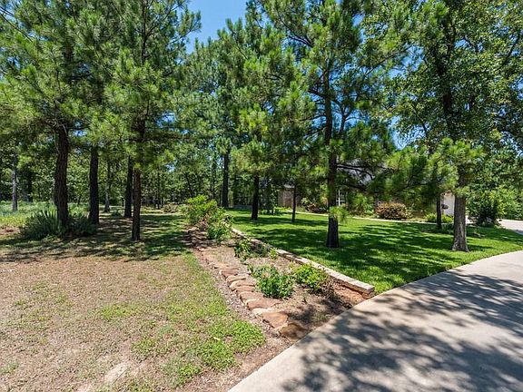 Absolutely gorgeous w privacy &peacefulness on 1.84 ac shady tree covered lot w outdoor liv& FP! Beautiful custom hm w 24" tile, tray ceilings, crown molding, art niches, granite in kitch& baths, glass pendant lighting, SS appliances w double ovens& warming drawer, 22+cabinets, island, drop down venthood, custom lighting& faucets, Huge WIS w 3 heads, 2" wd blinds, 2 wd burning FP, brick capped patio w outdoor living, sprinkler, gutters, rainwater collection&dog pin! Truly one of the best lots in Dogwood!