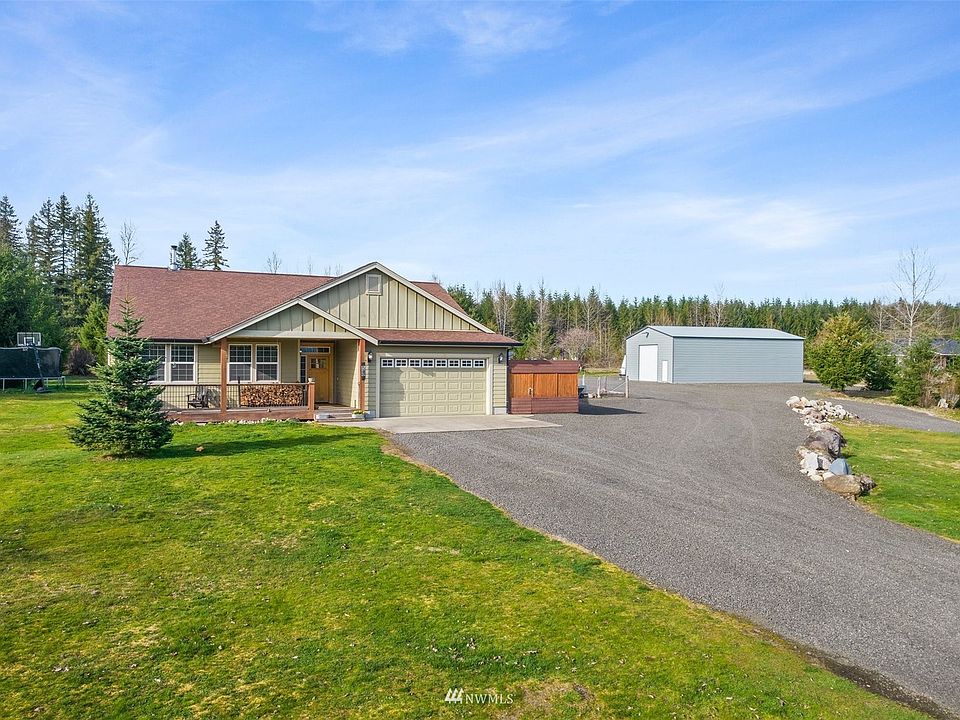 This one has it all. Large 30X50 shop, acreage and a stunning open floorpan home. This 3 bedroom 2 bath home has a whole home generator that runs on propane, heat pump, built in work bench with tons of storage in the attached garage, unique covered back patio with outdoor kitchen. Grill and smoker built in, too. Two story bunk house, fenced and raised garden beds and then there's the SHOP! This large shop has tons of space for storing all your toys and tools. All on 5.41 acres. Starlink, too.