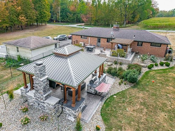Enjoy single floor country living in this beautifully updated brick ranch on 2.21 acres! The living room features hardwood floors and a fireplace, while the eat in kitchen offers stainless steel appliances, granite countertops, and space for dining. Down the hall are three bedrooms with hardwood floors and a full bath. The lower level expands your living space with a second fireplace, a recreation area, and another full bath. Step outside to an amazing backyard with a pergola topped patio and an incredible outdoor gathering spot that includes a built in kitchen with grill, refrigerator, and a lounge area in front of a stone fireplace. An attached two car garage plus a detached two car garage provide plenty of space for parking and hobbies. Updates include a newer roof, furnace, A/C, and hot water tank. With a great location close to amenities and within the Marlington school district, this is a rare find you won’t want to miss!