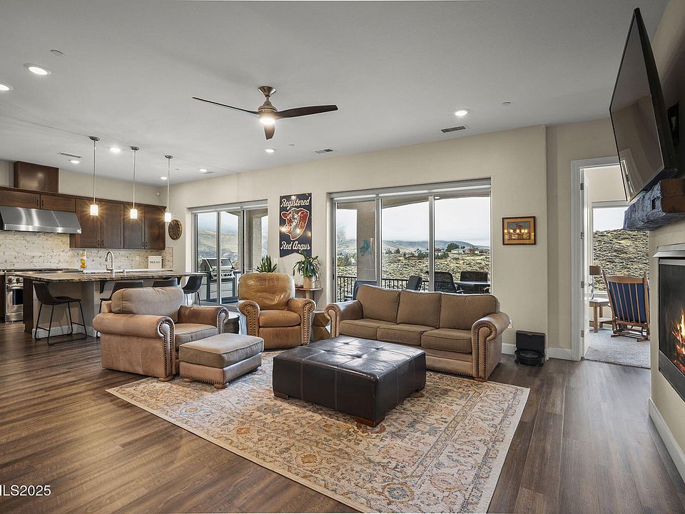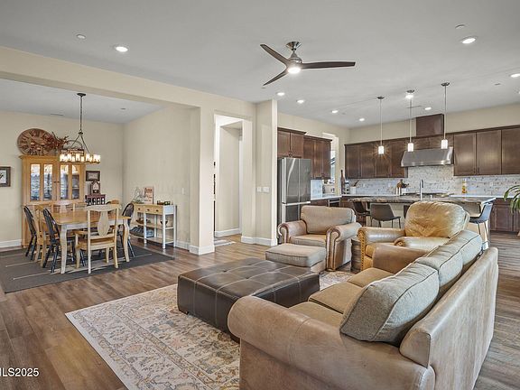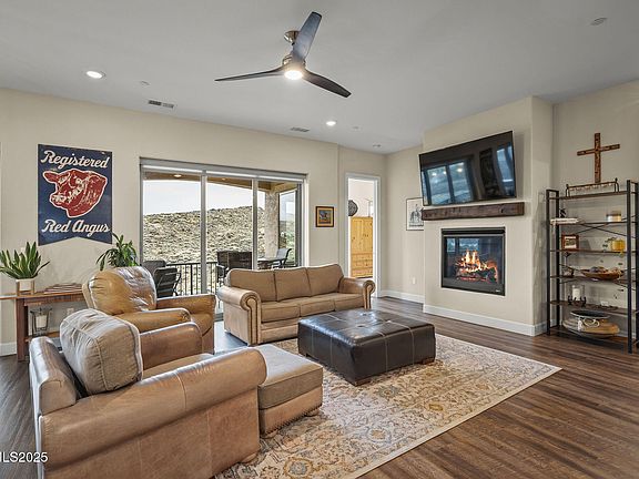 Discover the perfect blend of comfort, character, and natural beauty in this exceptional 4 bed, plus office, 3.5 bath home with a secret room that you will be talking about to all of your friends. Thoughtfully designed with both functionality and style, the residence offers generous living areas, timeless finishes, and unobstructed, ever changing views of the Sierra Nevada mountains. Step inside this bright, open layout created with gathering and entertaining in mind. A true chefs kitchen complete with a dual-fuel commercial range oven. The space boasts of ample counter space, highlighting a gorgeous leather finish granite island, and room for everyone to gather. It flows effortlessly into the living room, forming a warm and inviting central hub ideal for everyday living. Large windows and sliding doors frame the mountain horizon, filling the space with natural light and creating a seamless indoor outdoor connection. Step out on to the beautifully finished covered deck and enjoy unobstructed views filled with the most colorful sunsets. This home offers a versatile bonus room perfect for a dedicated office, studio, fitness area, or guest retreat. The lower level provides outstanding flexibility. Here you will find a private bedroom with its own bathroom, an excellent setup for extended family or guests, as well as an additional living area ideal for movie nights, relaxation, or multigenerational living. Hidden within this level is a stylish speakeasy, offering a unique and memorable space for entertaining, enjoying craft cocktails, or retreating to your own private lounge. Outdoor living is equally impressive. Multiple areas to dine, unwind, or entertain make it effortless to enjoy the fresh mountain air and breathtaking panoramic views. Whether savoring a morning coffee on the patio, hosting summer barbecues, or stargazing in the evening, the surrounding landscape becomes a natural extension of the home. Blending modern comfort, flexible spaces, and extraordinary views, this home offers a rare opportunity to experience Sierra Nevada living at its finest.