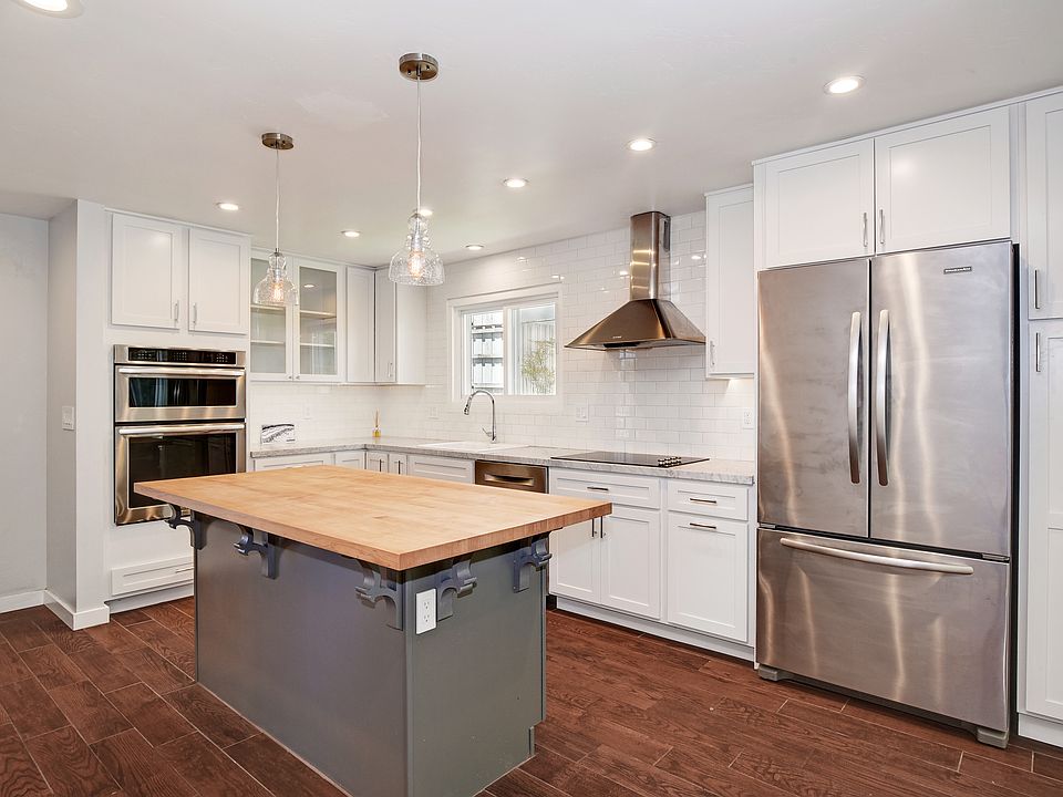Nice greenbelt viewCorner unitButcher block kitchen islandCustom white cabinetryNew bathroomsNew windowsHard flooring