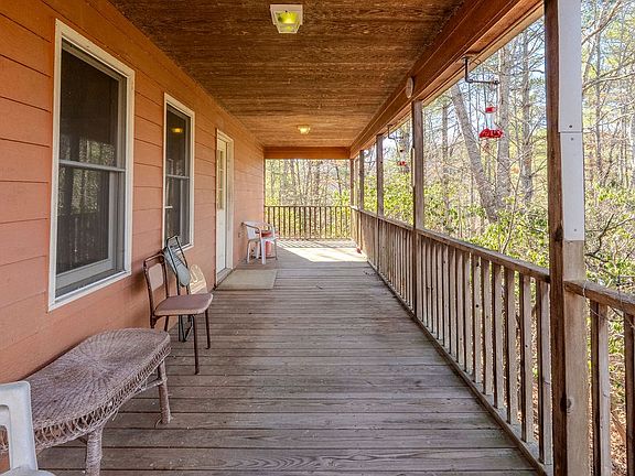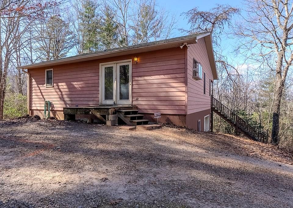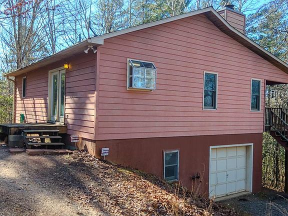 Private ridge-top home just 10 minutes from downtown Franklin, NC. This stick-built home offers just under 1,000 sqft on the main level, featuring 1 bedroom and 1.5 baths, washer/dryer hookups, and a fireplace with an additional ~950 sqft downstairs heated (partially finished), one bedroom, full bathroom, and garage. The lower level has both interior and exterior access and extra tall ceilings, providing excellent flexibility for future use. Situated on over 3 acres of unrestricted land, this end-of-the-road property offers exceptional privacy and long-range mountain views with selective tree trimming. While currently configured as a "one-bedroom" home, the property is equipped with a 3-bedroom septic system, allowing room for expansion if desired. Additional features include a private well, owned propane tank, propane furnace, security system, good cell service, and appliances that convey. Enjoy outdoor living with a covered porch and additional deck, perfect for enjoying the peaceful ridge-top setting. A solid opportunity for a first-time home buyer, mountain retreat, or investor seeking unrestricted acreage with future potential — all in a quiet setting just minutes from town.