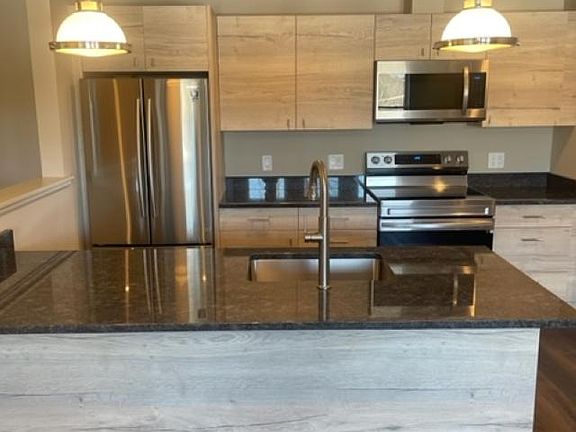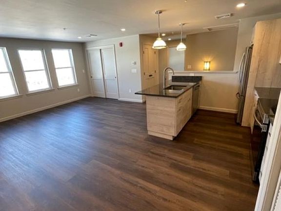 Beautifully renovated downtown Hampton apartment for rent. Second floor 2-bedroom 2-bathroom unit. Open concept kitchen/livingroom. Stainless steel appliances and granite counter tops make up a modern kitchen. Two very good size bedrooms. Two off street parking spaces. Stackable washer dryer unit. Located in downtown Hampton in a completely renovated mixed use building. Pets are negotiable. Tenant is responsible for electric. Owner takes care of water/sewer plowing.