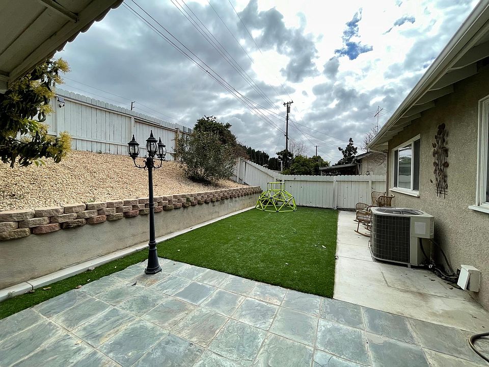 This renovated home has an open floor plan and many desirable features. Walking up to the home you will be greeted by a custom entry and gorgeous front door. Entering the home you will be delighted by a cozy fireplace in the living room and newer large windows that flood the room with natural light. Crown molding and recessed lighting throughout the home exude elegance. The stunning kitchen has been remodeled with granite countertop, stainless steel appliances and rich wood cabinets. Exterior and interior have been painted with neutral colors to blend with any decor. All of the bedrooms include ceiling fans which along with the new a/c will keep you cool during the hot summer. Master bath has a well appointed shower with beautiful tile and rain shower head. Guest bathroom features a marble top vanity and stylish tile floor. Sliding glass door out of living room leads you to a peaceful backyard with a covered patio. Both front and backyard are nicely landscaped with fruit trees including avocado, lemon, apple and pomegranate trees in the backyard. This neighborhood feeds into the highly rated Fullerton High School district. Come take a look!!