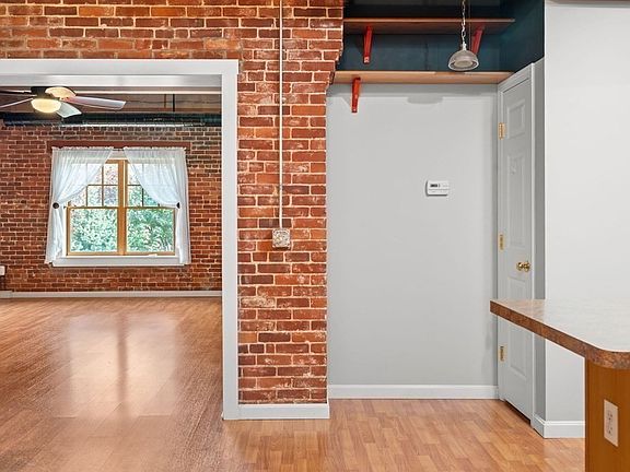 Industrial vibes in outstanding historic turn-of-the-century mill conversion to residential use. Interior brick walls, massive beams, and high wooden ceilings. The kitchen has stainless appliances, wooden cabinets with faux tin reproduction backsplash and a large breakfast peninsula. Bonus - a pantry! A separate dining area with faux reproduction tin ceiling could be converted to storage or office space. The large living room has out of the way overhead storage built in. French doors lead to carpeted main bedroom that offers double closets. Single level living, conveniently located right off the elevator. Intercom system for visitor admittance. Washer -dryer is behind louvered doors in spacious bathroom featuring tile floor and wainscoting with chair rail..Low condo fees. Pictures of building are from back entry. Approx.18 minutes to Rte. 495.