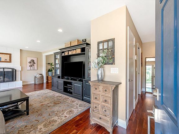 Brick fireplaceIsland for casual diningHis and hers closetsAmple cabinetryUpdated guest bathGorgeous acacia wood floorsOpen floor plan