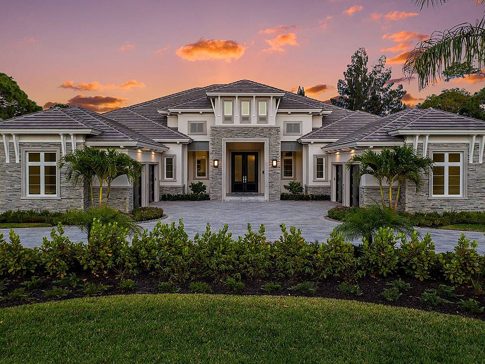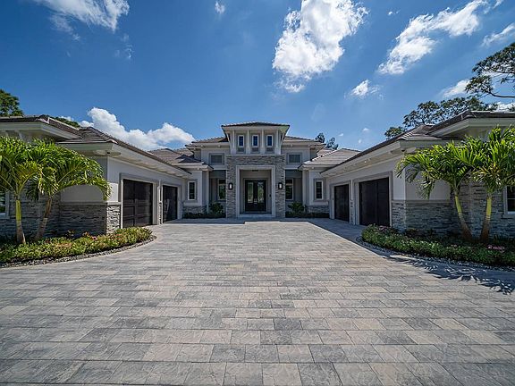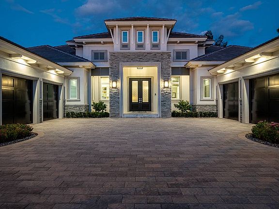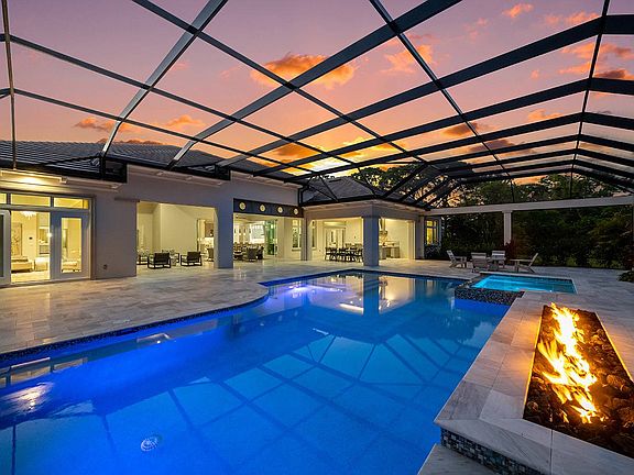 This brand new custom built furnished estate by DIVCO is situated in Pine Ridge on over an acre of land and is built with sleek elements that make this a sought-after gem in the Naples area. Rooms are spacious, and include 4 bedrooms plus a den, bonus room, 5 full and 2 half bathrooms, all spread over 5,289 square feet under air and 8,601 square feet total. Upgrades and other room notables are only fitting for an estate home of this magnitude, and include a dramatic double-door entry complete with a raised foyer, soaring beams in the great room, detailed crown moldings, and additional decorative features, wood coffered and tray ceilings for added appeal, gourmet kitchen with fine modern appliances, custom cabinetry, large walk in pantry and custom glass wine chilled room, custom tile and wood flooring, pocket sliding doors that help bring the outdoor beauty, wet bar, 4-car garage, home generator, utility room and much more. The lanai is a true retreat, with a spectacular pool and spa with a sun shelf, water features, linear fire pit, outdoor kitchen, and multiple seating areas for entertaining. This home is conveniently located to Naples finest beaches, restaurants & shopping!