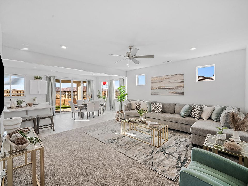 Stunning model home on elevated view lot in Divario now for sale!! This CareFree Model home has 4 bedrooms, 2 bathrooms, and a spacious great room with a sliding glass door walking out to views of Southern Utah's red mountains. With features like 2x6 construction, tiled showers, epoxied garage floors, soft close cabinets with dovetail drawers, stainless steel GE appliances, window coverings, smart home pre-wiring, 360 landscaping, and more! You will never share a back wall with a neighbor, or get tired of these views. Come check it out and make this your new home for Christmas!