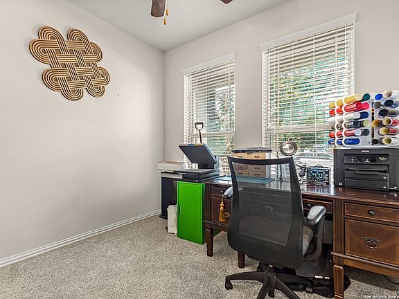 Spacious 2-Story Home with No Back Neighbors! Discover incredible value in this Leander, Texas home for sale, a sought-after Austin suburb known for top schools, family-friendly neighborhoods, and quick access to city conveniences. This move-in ready 2-story offers major updates: new roof (2024), new water heater (2022), new carpet (2025), new dishwasher (2025), new microwave (2024), new garbage disposal (2024), and fresh paint throughout. Added perks include a smart WiFi thermostat plus solar-powered security lighting and cameras that convey. Inside, you'll find 4 bedrooms plus an office (or 5th bedroom), 3 full bathrooms, and a loft for flexible living. The downstairs secondary bedroom with full bath is ideal for guests or multigenerational living. Upstairs, the oversized primary suite boasts a huge walk-in closet, while secondary bedrooms also feature large closets for ample storage. Outdoors, enjoy a xeriscaped backyard with lighting and no back neighbors, backing to a peaceful greenbelt. Relax on the covered front and back patios, or take a short stroll to the community park and pool just beyond the greenbelt. This Leander property is truly priced to sell, blending thoughtful updates, energy-efficient features, privacy, and space in one of the fastest-growing Austin suburbs. Don't miss your chance to call this beautiful home yours!