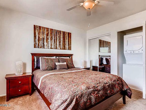 UNIT IS TURNKEY FURNISHED FROM KITCHENWARE TO LINENS. AND INCLUDES A STACKED W/D IN PRIMARY BEDROOM. THE UNIT IS ON THE SECOND FLOOR AND HAS A HUGE BALCONY WITH SEATING TO ENJOY THE VIEWS TO THE COURTYARD AND POOL AREA BELOW AS WELL AS EAST TO THE MOUNTAINS AND SUNRISE. ALL FURNITURE IS LIKE NEW WITH COMFORTABLE QUEEN BEDS-ALL LINENS INCLUDED, ONE FLAT SCREEN AS WELL. ENJOY YOUR STAY AT THIS COMPLEX WITH GROCERY STORES, BANKS ETC. LESS THAN 2 MINUTES AWAY. YOU ARE 5 MINUTES FROM DOWNTOWN WICKENBURG.