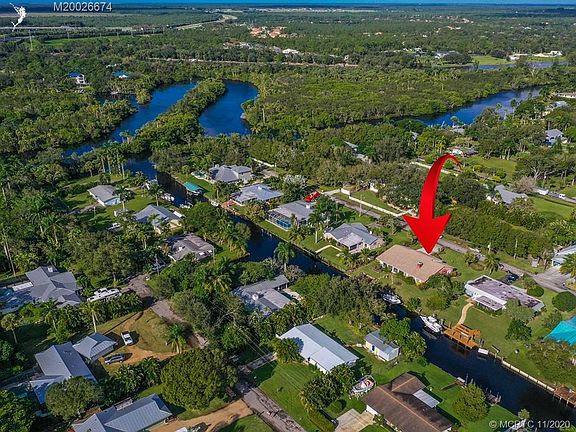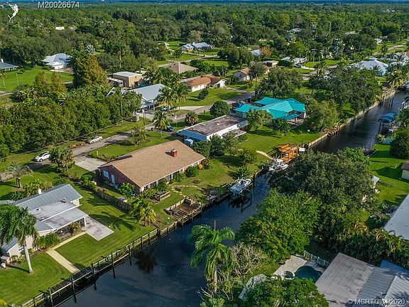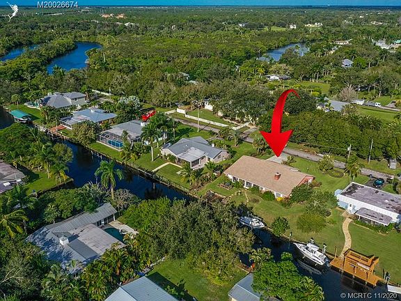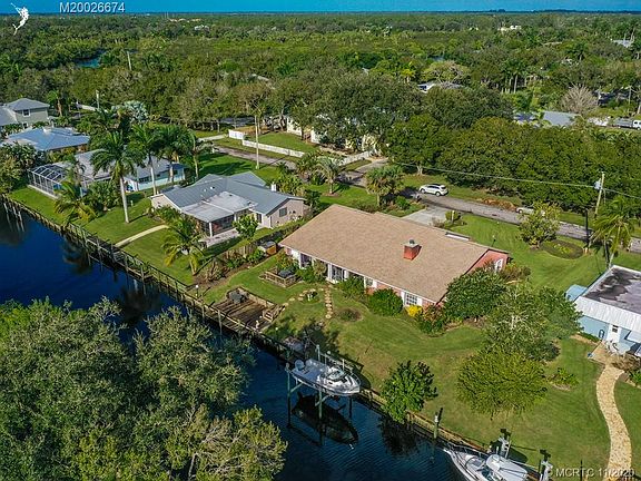 Waterfront on the St. Lucie River in Tranquil Harbor Estates. Toys welcome! Boaters paradise with ocean access, no fixed bridges. Dock boasts 10K lift, outdoor shower plus 2 decks for outdoor relaxation, and enjoyment. Spacious, open floor plan in need of a total remodel. Get your HGTV inspirations flowing. Super floorplan with loads of potential. All 3 bedrooms are large, vaulted ceilings, great room design, wood burning fireplace, CBS construction with brick siding, charming front porch, large screened patio, indoor laundry with utility sink, accordion shutters and whole house generator. Built in 1983, with great bones in need of total remodel. Convenient location near shopping, highways & minutes to historic downtown Stuart. Voluntary HOA only $100/yr allows access to waterfront part and community boat ramp. NO DEED RESTRICTIONS! Bring your interior design ideas and toys. Hidden Gem in Stuart!