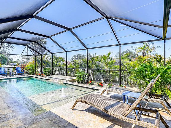 Escape to the shores of Venice, FL, and feel at home in this 3-bedroom, 2-bath vacation rental. Just minutes from Caspersen Beach and Historic Downtown Venice, this home offers the perfect home base for exploring the area's attractions. The single-story property requires using 1 small exterior step to enter. This house features a furnished lanai, a covered patio, patio furniture, an outdoor dining area, and a gas grill. Inside, you'll find 3 Smart TVs, an electric fireplace, a 6-person dining table, and a breakfast table. The kitchen is equipped with stainless steel appliances, including a stove/oven, microwave, dishwasher, and refrigerator, as well as dishware/flatware, a Keurig single-serve coffee maker, a drip coffee maker, a toaster, and an air fryer. Other amenities include complimentary toiletries, central air conditioning/heating, a hair dryer, an iron/board, laundry detergent, free Wi-Fi, and a washer/dryer. There is an optional pool heat fee that can be applied to the entire stay. Bike trails and parks are nearby. This home is located 5 miles from Historic Downtown Venice. There are 5 exterior security cameras on the property. Camera 1 is a Nest doorbell device facing the front outdoor entry. Camera 2 is on the front of the house facing the driveway. Camera 3 is on the back of the house overlooking the lanai. Camera 4 is on the side of the house facing the yard and lanai exterior. Camera 5 is located on the side of the house facing the yard. The cameras do not look into any interior spaces and actively record video and sound.