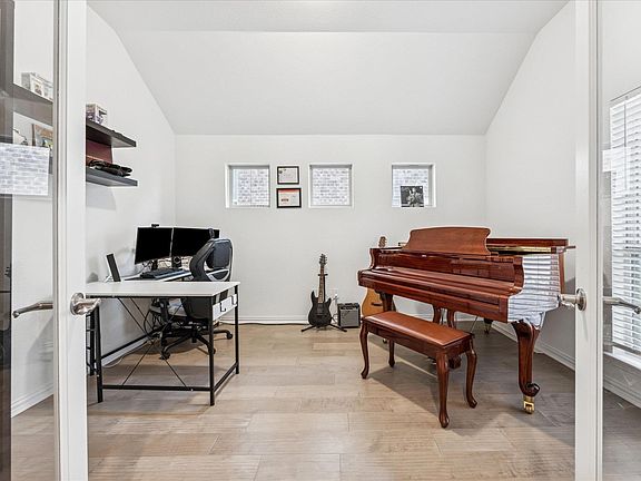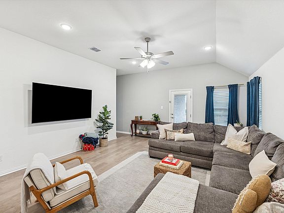 Well-maintained 2023 construction home located in the highly desirable Sunfield community. This single-story residence offers 2,028 sq ft with 4 bedrooms, 2 full bathrooms, and a dedicated home office featuring a custom built-in bookcase. The open-concept floor plan includes a spacious living area and a large kitchen with ample cabinet and counter space ideal for everyday living and entertaining. Washer, dryer, and refrigerator are included, and the living room TV can remain with the home. Additional upgrades include epoxy-coated garage floors, a Tesla charger in the garage, covered back patio, and a full sprinkler system in both the front and backyard. Enjoy resort-style community amenities including three pools, a lazy river, dog park, and extensive walking trails all within walking distance of the home. Conveniently located near schools, shopping, dining, and major roadways for easy commuting.