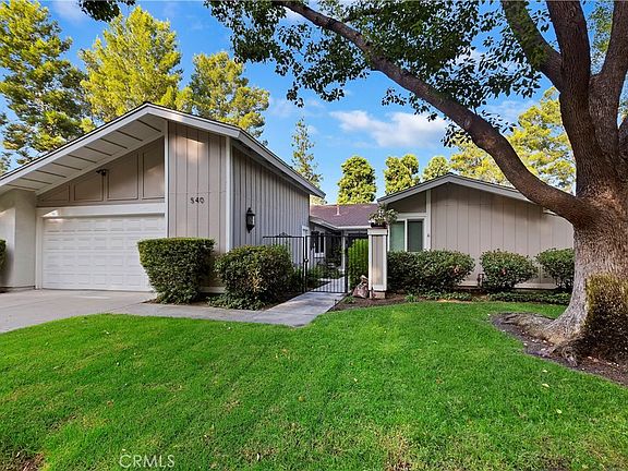 HIGHLY SOUGHT AFTER Canyon Hill of Riverside Community home with a view. This home exudes quality. The spacious living and dining room offer high ceilings, crown molding, fireplace, and lots of natural lighting. Kitchen is remodeled with granite counters, soft close cabinets and stainless steel appliances. Front bedroom includes a built desk and walk-in closet. Primary bedroom offers two closets, remodeled bathroom with walk-in shower. Third bedroom is currently opened to the living room with a built-in bar (wall can be added to close in room). Inside Laundry Room with sink. Enjoy a quiet evening on the back patio which features a large built in barbecue and a lovely view. Conveniently located to Canyon Crest Country Club, Town Centre with shopping, banking, restaurants, car wash/gas station, UCR and freeway access.