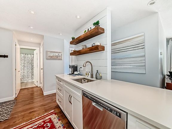 Market Aligned Price Adjustment- Welcome to Unit 202 at Cambridge Square North, located in the heart of Cliff Bungalow, one of Calgary’s most vibrant and walkable inner-city communities. This fully renovated 2 bedroom, 1 bathroom condo offers over 750 square feet of modern, functional living space that immediately feels like home. The open concept layout seamlessly connects a crisp white kitchen, complete with quartz countertops, stainless steel appliances, and a built-in pantry, to the spacious living and dining area. Step out onto your private south facing balcony where you can enjoy morning coffee or unwind in the evening sun. Natural light pours through the large windows, giving the entire space an airy and inviting feel. The primary bedroom is tucked away with its own walk-through closet accented by a stylish barn door and access to a beautifully updated 4pc bathroom. The second bedroom is generously sized and versatile enough to accommodate guests, a home office, or even a creative studio. Additional features include in-suite laundry, a large front walk-in closet for extra storage, underground parking, a dedicated storage locker, and a remodelled lobby that adds extra polish to the building’s appeal. Located just steps away from Mission, 17th Avenue, parks, boutique shopping, and some of Calgary’s top dining spots, this unit offers the lifestyle you’ve been waiting for. Whether you're a first-time buyer, savvy investor, or looking for a stylish urban retreat, this one checks all the boxes. Professionally upgraded, perfectly located, and priced to move. Schedule your showing today.