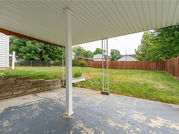 Discover the ease of one-floor living in this charming ranch-style home, featuring 2 bedrooms and 1 full bath. As you step inside, you'll be greeted by a bright and welcoming living room. The eat-in kitchen, boasts tile floors, a breakfast bar, and ample cabinet space. Step out onto the covered back patio from the kitchen, perfect for enjoying warm summer evenings. Conveniently located off the kitchen, the first-floor laundry room adds to the home's practicality. Adjacent to the dining area are two spacious bedrooms and a full bath with a linen closet. The partially finished basement expands your living space with a cozy rec room featuring a wood-burning fireplace with a brick mantel, a workshop perfect for any handyman, an additional laundry area with a utility sink, and an extra-large shower. This home also includes an attached 1-car garage with loft storage. Don't miss out—schedule your private showing today!